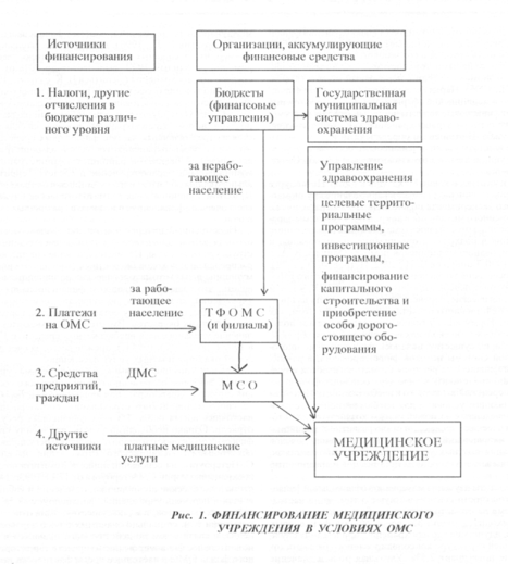 Финансовые средства фонда обязательного медицинского страхования образуются за счет части единого социального налога по ставкам, установленным законодательством Российской Федерации, части единого налога на вмененный доход для определенных видов деятельности в установленном законодательством размере, страховых взносов на обязательное медицинское страхование неработающего населения, уплачиваемых органами исполнительной власти субъектов Российской Федерации, местного самоуправления с учетом территориальных программ обязательного медицинского страхования в пределах средств, предусмотренных в соответствующих бюджетах на здравоохранение, иных поступлений, предусмотренных законодательством Российской Федерации.