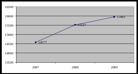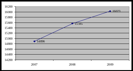 Количество организаций - юридических лиц, состоящих на учете по месту своего нахождения, на 01.01.2010 года составило 16023, что на 1127 организацию, или на 7,6% больше по сравнению с 2007 годом (рис.9).