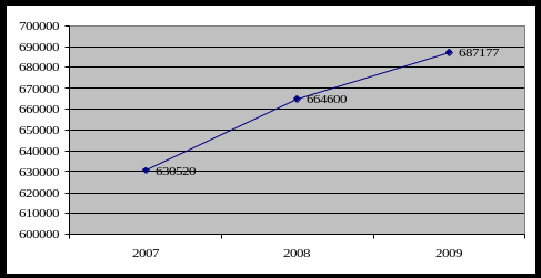 Так, по состоянию на 01.01.2010 численность налогоплательщиков - физических лиц, имеющих ИНН (рис.8) в республике составляет 687 тыс. чел., что на 57 тыс. человек, или на 8,9% больше, чем в 2007 году.