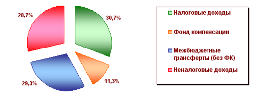 Согласно Диаграмме, в структуре доходов местных бюджетов налоговые доходы практически равнозначны межбюджетным трансфертам (без фонда компенсации), хотя в этих налоговых доходах заметная часть приходится на замещающие дотации дополнительные нормативы налоговых отчислений.