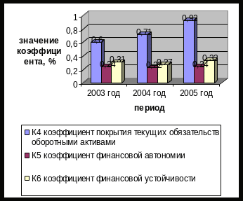 Рис. 8 Показатели финансовой устойчивости предприятия за 2003-2005 гг.