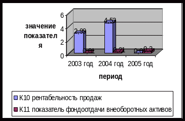 Рис. 10 Показатели рентабельности и интенсификации процесса производства предприятия за 2003-2005 гг.