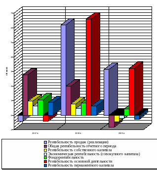 Рентабельность основной деятельности в 2007 г. составила -0,43 %, в 2008 г. 6,6 %, в 2009 г. 3,23 %. Происходило увеличение коэффициента в 14 раз в 2008 г. и в 7 раз в 2009 г. по сравнению с 2007 г. Это положительная тенденция, но наблюдается снижение показателя в 2009 г. на 51 % по сравнению с 2008 г.