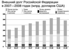 Внешний долг Российской Федерации в 2008 году (млрд. долларов США)
