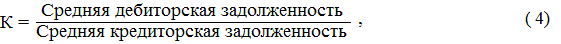 В анализе большое значение имеет показатель соотношения дебиторской и кредиторской задолженности, то есть отвлеченного из оборота денежного капитала и привлеченного капитала в качестве источника финансирования текущих платежей. Между ними чаще всего прослеживается прямая зависимость. Неплатежи поставщикам зачастую связаны с отвлечением денежного капитала из оборота. Если соотношение равно 1, то это считается нормальным состоянием расчетов.