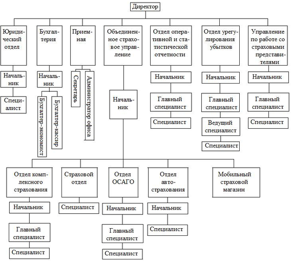 Рис. 2.1. - Организационная структура центрального офиса томского представительства ЗАО «Страховая группа «Спасские ворота».