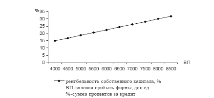 Рис. 3.3 – Рентабельность собственного капитала при возрастании финансового рычага