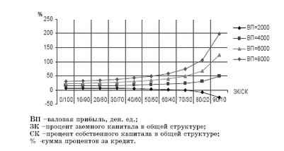 Вместе с тем необходимо учитывать, что в реальной экономике невозможно много брать в долг, т.к. соотношение заемного и собственного капитала ограничено производственными возможностями предприятия и емкостью рынка.