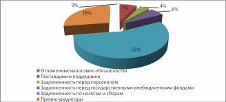 В 2006 году в структуре заемного капитала также не произошло значительных изменений, задолженность 55% заемного капитала приходится на долю задолженности по налогам и сборам, 28% - прочие кредиторы. Задолженность перед государственными внебюджетными фондами снизилась и в 2006 году составила 6% от общей суммы заемных средств.