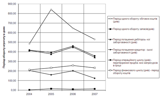 Рис.2.8. Динаміка показників ділової активності (оборотності) ТОВ «Сєнтоза-Тур» у 2004–2007 р.р.