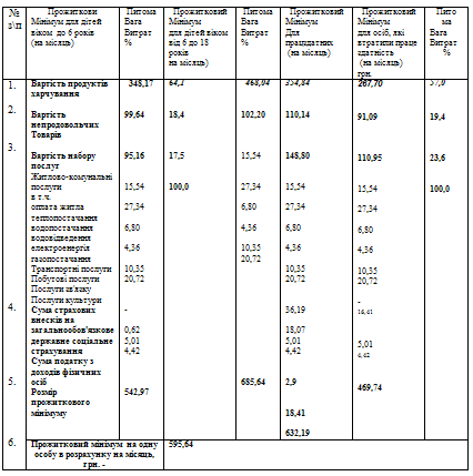 | | | в середньому на одну особу на місяць | для працездатних осіб | для осіб, які втратили працездатність | для дітей вікомдо 6 років |