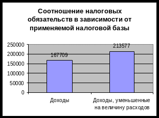 Цифровые значения и графическое изображение наглядно демонстрирует, что из двух налоговых баз наиболее привлекательной являются доходы.