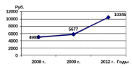 среднедушевые доходы населения в 2012 году - 10 345 рублей, рост в 2 раза к уровню 2008 года (рис. 3):