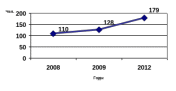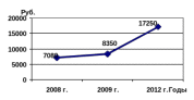 Средняя заработная плата работающего составит в 2012 году - 17 250 рублей, рост в 2,4 раза к уровню 2008 года (рис. 2):