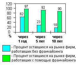 За последние несколько лет все больше предприятий, функционирующих на российском рынке, заявляют о желании использовать франчайзинг для развития своего бизнеса. В ближайшие годы франчайзинг может стать одним из наиболее эффективных методов выхода предприятия на региональный рынок России. Франчайзинг доказал свою эффективность и интенсивно развивается благодаря высокой степени выживаемости франшизных предприятий (см. рис. 1).