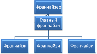 1. Региональный франчайзинг — трехуровневая система, в которой главный в регионе франчайзи, промежуточное звено, выступает в роли официального, с широкими полномочиями представителя головной компании (см. рис. 1.3).