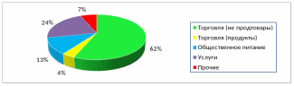 Вместе с тем, в общей совокупности франшиз наблюдалось в 2008 г. некоторое снижение доли сектора услуг, что связано с опережающим ростом франшиз в секторе непродовольственной торговли, и соответственно увеличение доли непродовольственного сектора с 47 % в 2007 г. до 52 % в 2008 г.