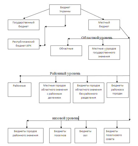 Как видно со схемы, бюджетная система Украины включает четыре уровне, которые отвечают ее административно-территориальному делению: