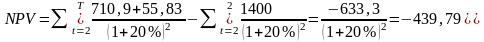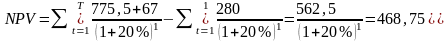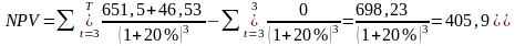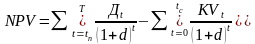 Влияние инвестиционных затрат и доходов от них на чистый приведённый доход (NPV) можно представить в следующей формуле: