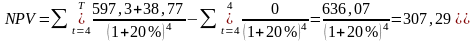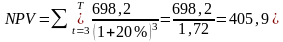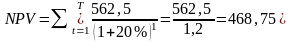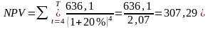 Таким образом, чистый приведённый доход составит: за первый год – 468,75 тыс. руб.; за второй год – -439,79 тыс. руб.; за третий год – 405,9 тыс. руб.; за четвёртый год – 307,29 тыс. руб.