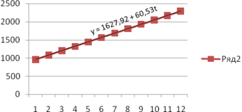 По рассчитанным параметрам записывают уравнение прямой линии для ряда динамики, представляющей собой трендовую модель искомой функции.