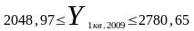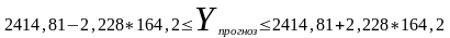 Рассчитаем границы интервалов прогнозного значения прибыли от реализации используя формулу 10: