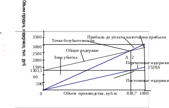 Построим графическую модель точки безубыточности для проекта А (см. рисунок 8), для чего произведем необходимые расчеты согласно формулы (13), данные возьмем из таблицы 16: