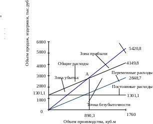 Согласно полученным расчетам по проекту Б годовой объем производства пиломатериалов, при котором предприятие не получает прибыли, но и не несет убытков –890,3 куб. м.