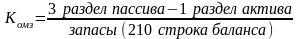 коэффициент обеспеченности материальных запасов собственными средствами – показывает, в какой степени материальные запасы покрыты собственными средствами и не нуждаются в привлечении заемных средств, формула (2.2).
