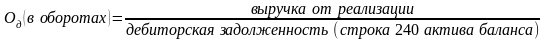 оборачиваемость дебиторской задолженности (в оборотах и днях) – характеризует скорость погашения дебиторской задолженности предприятия, формула (2.14 – 2.15).