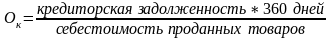 оборачиваемость кредиторской задолженности, в днях – характеризует скорость погашения кредиторской задолженности предприятия, формула (2.13).