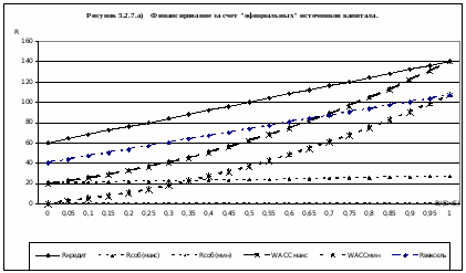 На Рисунке 5.2.7.а) введены следующие обозначения: Rсоб(макс) и Rсоб(мин) - соответственно максимальная и минимальная стоимости собственного капитала, Rкредит - стоимость кредитования, Rвексель - стоимость вексельного капитала, WAACCмин и WACCмакс - соответственно минимальная и максимальная стоимость совокупного капитала.
