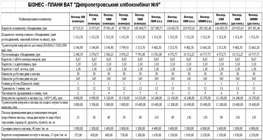 Бізнес-плани розрахунків ВАТ „Дніпропетровський хлібзавод № 9”