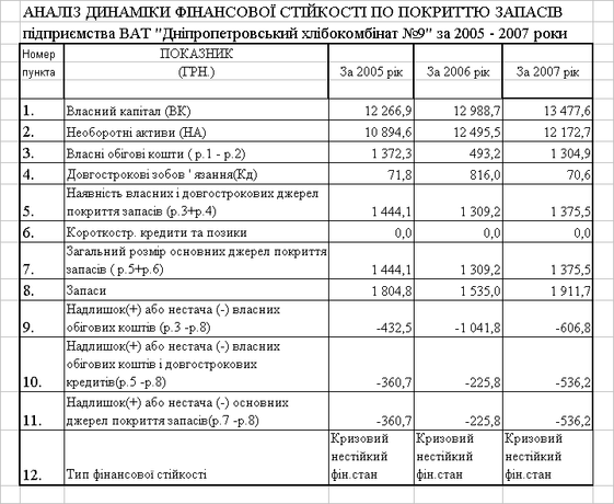Для оперативного розрахунку абсолютних показників фінансової стійкості(коефіцієнту покриття запасів оборотними коштами) вартість запасів (З) порівнюється з послідовно поширюваним переліком таких джерел фінансування [23]: