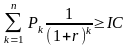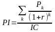 Оскільки приплив коштів розподілений у часі, він дисконтується за допомогою коефіцієнта r, встановлюваного інвестором самостійно виходячи зі щорічного відсотка повернення, який він хоче чи може мати на інвестований їм капітал. Припустимо робиться прогноз про те, що інвестиція (ІC) буде генерувати протягом n років річні доходи в розмірі Р1, Р2, …, Рn.