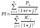 Якщо проект припускає не разову інвестицію, а послідовне інвестування фінансових ресурсів протягом m років, то формула для розрахунку PІ модифікується в такий спосіб (з врахуванням впливу інфляції як на дисконтовані потоки інвестиції, так і на згенеровані потоки прибутку інвестиційного проекту):