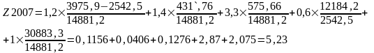 Розрахунок інтегрального показника Альтмана за даними балансу ВАТ “Дніпропетровський хлібозавод №9” за 2007 рік , дає наступні значення :