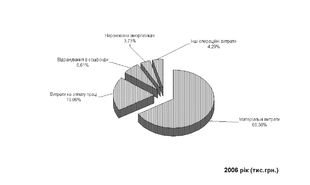 Рис.2.12. Структура складових часток повної собівартості продукції підприємства в ВАТ „Дніпропетровський хлібзавод № 9” у 2006 році