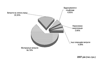 Рис.2.13. Структура складових часток повної собівартості продукції підприємства в ВАТ „Дніпропетровський хлібзавод № 9” у 2007 році
