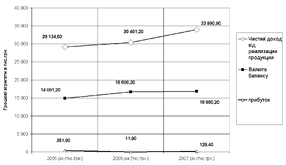 обсяги чистого доходу від реалізації продукції в 2005 – 2007 році поступово нарощуються з рівня 29,13 млн.грн.(2005) до рівня 30,4 млн.грн. у 2006 році та до рівня 34,0 млн.грн. у 2007 році;