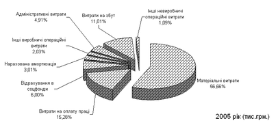 Рис.2.8. Структура складових часток виробничої собівартості в ВАТ „Дніпропетровський хлібзавод № 9” у 2005 році