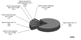 На рис.2._ наведена порівняльна структура формування виробничої собівартості 1 кг хліба за рахунок вартості основних складових у 2004 та 2006 роках.