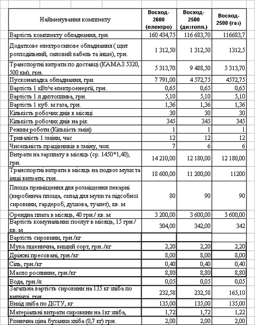 3.2 Бізнес-план зниження собівартості продукції у 2008 році за рахунок впровадження нових типів хлібопекарень «ВОСХОД»