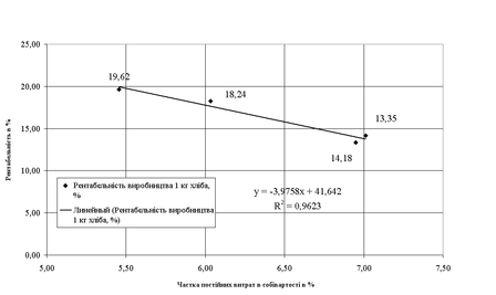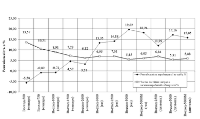 При рості обсягів випуску хліба міняється співвідношення постійних та перемінних витрат, при цьому структурна доля постійних витрат падає, що підвищує рівень рентабельності виробництва.