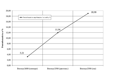 Таким чином, отримані результати калькуляційних розрахунків показників альтернативних бізнес-планів показали, що при рівнях вартості електроенергії, газу та дизельного пального для січня 2008 року рентабельність виробництва хліба для печей з сталим рівнем продуктивності 2500 кг хліба становить: