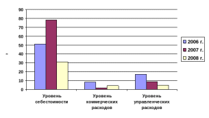 Рис. 2 Уровень себестоимости продажи услуг ООО «Ремприбор» в 2006-2008 г.г.