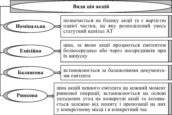 Найпоширеніші види цін акцій представлені на рисунку 1.2