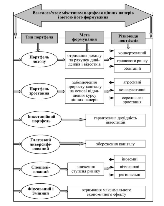 Пріоритети інвестора визначають мету формування портфеля і його тип (взаємозв'язок мети і типу портфеля представлений на рисунку 1.4 ).