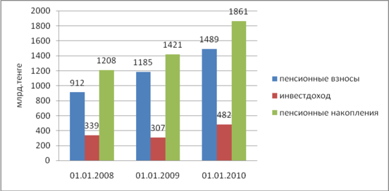 Пенсионные накопления вкладчиков (получателей), увеличившись за 2009 год на 440,0 млрд. тенге (31,0%), на 1 января 2010 года составили 1 860,5 млрд. тенге. За декабрь 2009 года прирост пенсионных накоплений вкладчиков (получателей) составил 36,3 млрд. тенге (2,0%).