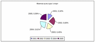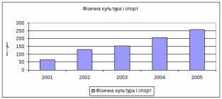 Видаткова частина районного бюджету на фізкультуру і спорт за своїми показниками є значно більшою, ніж на культури і мистецтво. З кожним роком ці видатки зростають.(.додаток В, рис.2.12.,рис.2.13) Якщо розглядати структуру цих видатків за економічною класифікацією (Додаток Л ),слід відмітити ,що за всіма показниками , згідно з кодами бюджетної класифікації , відбувалося стійке зростання всіх видатків , лише субсидії та поточні трансферти ( код 1300) з 2003р. не перераховувалися і капітальні видатки у 2003р.та 2004р відсутні, лише у 2005р. вони склали 6,0 тис.грн., тоді як у 2002р. цей показник дорівнював 33,5 тис.грн.
